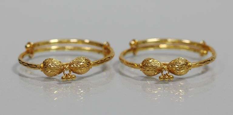 Two small 22kt yellow gold (tested) baby bangles with engravings.