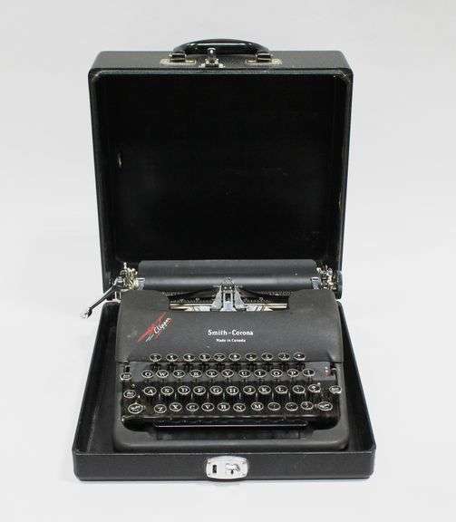 A 1940s Smith-Corona Clipper portable typewriter with hard case.