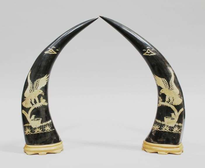 CARVED WATER BUFFALO HORNS (2)
