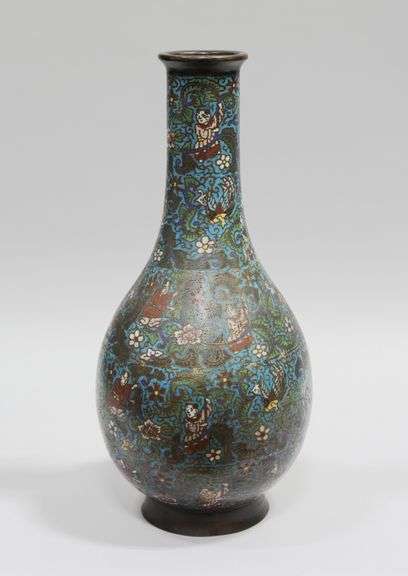 CHINESE CLOISONNE VASEA baluster form vase in assorted colours with a brass cap and base.Height: 18 in.